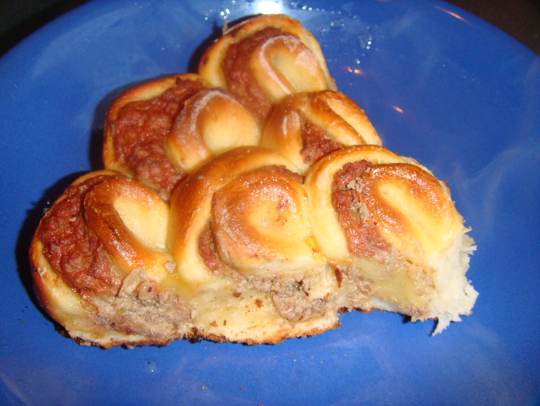 Для начинки копченую рыбу дважды провернуть через мясорубку с репчатым луком, тщательно перемешать и взбить с баночкой творожного сыра.
