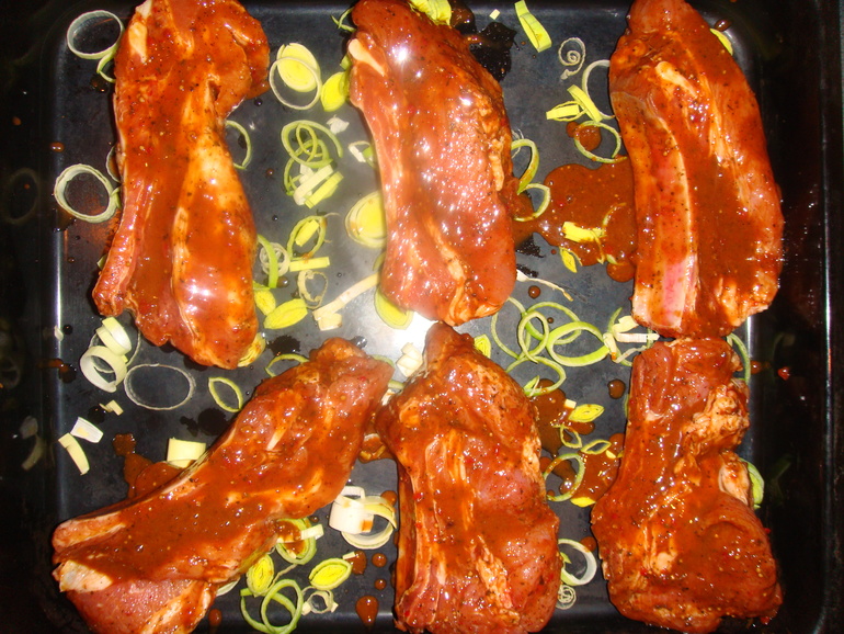 Готовим любимый маринад (я воспользовалась готовым шашлычным маринадом и соевым соусом):