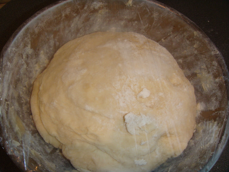 Замесить гладкое тесто, добавляя муку по необходимости. Затянуть пленкой, поставить подходить в теплое место: