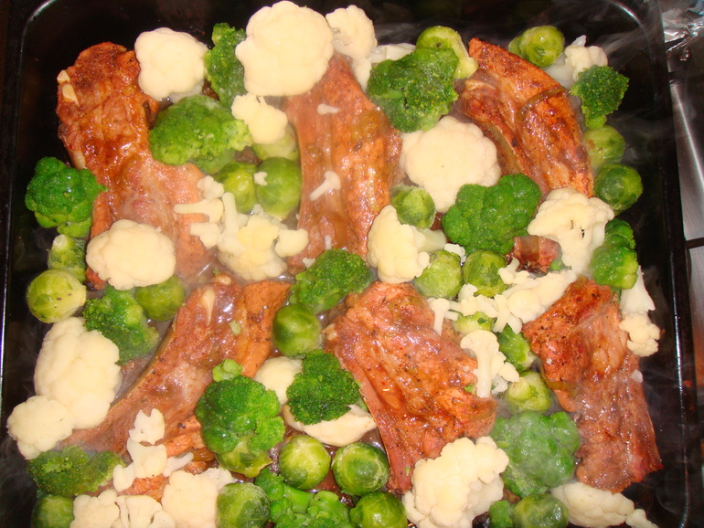 Затем пласты корейки и отправляем на 15 минут в жаркую духовку: