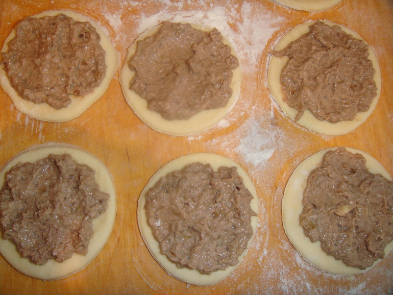 Выложить на кружки по 1 ч.л. начинки, размазать: