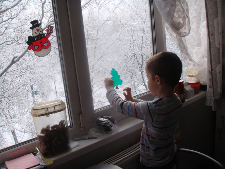 А мы наконец доснимали новогодние гелевые наклейки с окон: