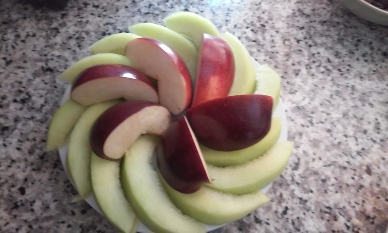 Сделали и фруктовое ассорти (это дыня и яблоки):