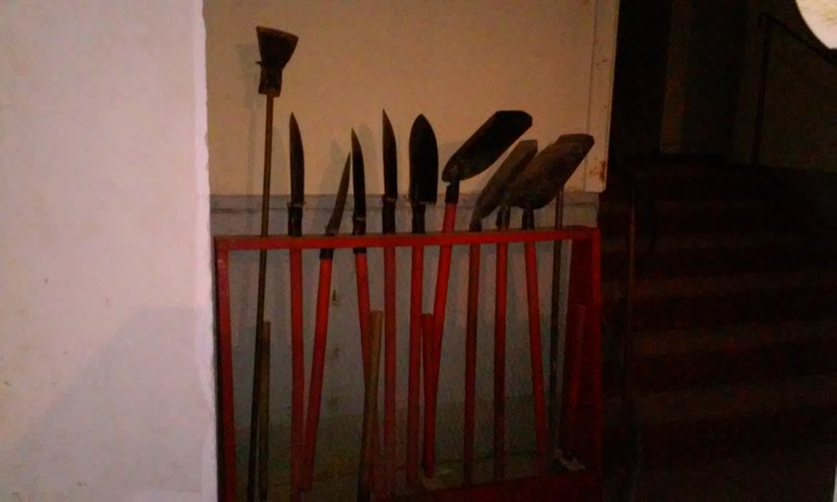 Маленький гардероб, невидимая касса с символической ценой за билет и парадная лестница на 2 этаж. На ней много картин военной тематики и наши военноначальники. Наверху... смена экспозиции, поэтому половина музея не работает. И даже эскизы памятников теснятся на лестничной площадке: