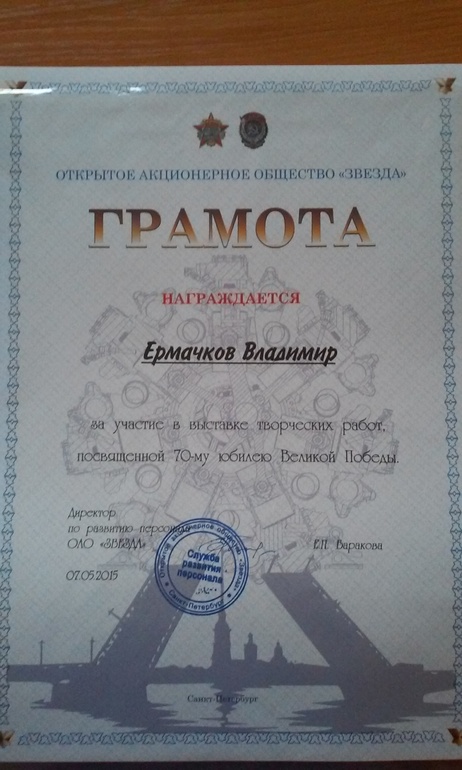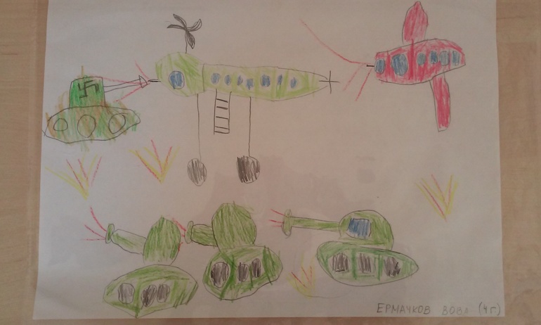 Выставку творческих работ для детей сотрудников еще организовали. И Вовкина картинка была первой: