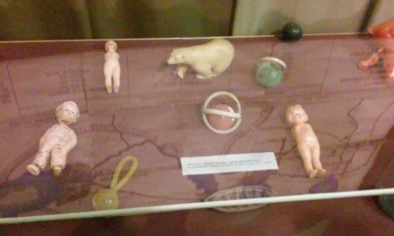 Зимой стали эвакуировать людей на Большую землю. Корабли бомбили. Это игрушки погибших детей, найденные на дне Ладожского озера: