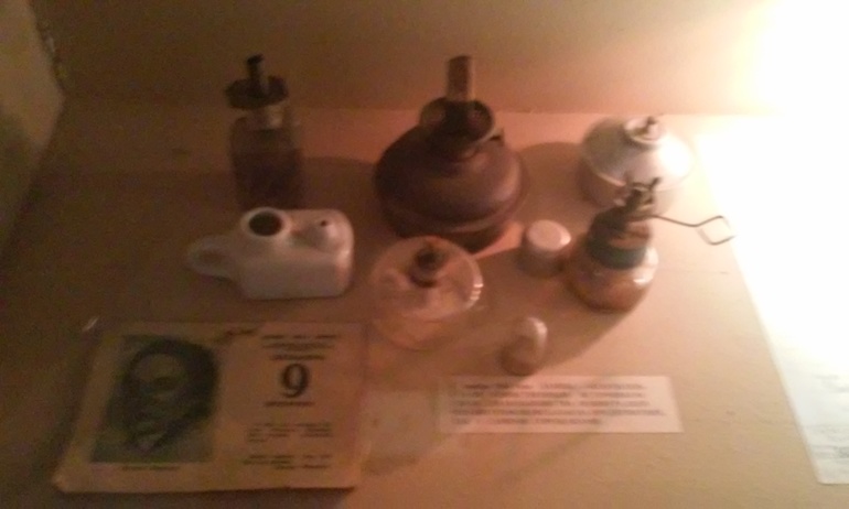 Осмотр экспозиции самостоятельный. Но нам повезло - какой-то класс был в это время на экскурсии. И мы хоть и не сначала, но услышали слова профессионала. Вовка проник к ней и шел за ручку, я тихо брела сзади, рассматривая печальные экспонаты. Это обычная блокадная комната: