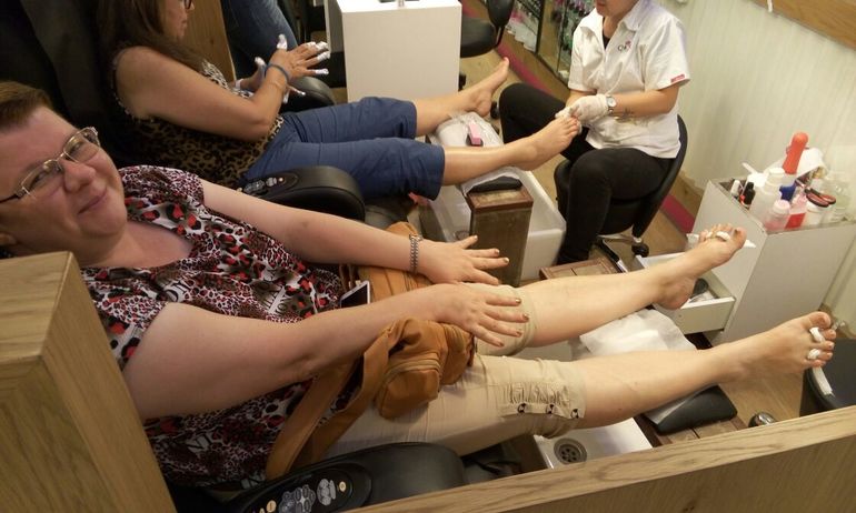 Первые дни на шее носила платочек, чтобы не пугать своим шрамом от уха до кадыка. Потом перестала - жарко. Никого моя шея и асимметрия лица тут не пугает. Но я для настроения все же "почистила пёрышки":