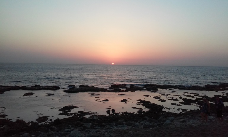 На море мы ходим каждый вечер. Только в это время можно погулять и подышать. А виды какие: