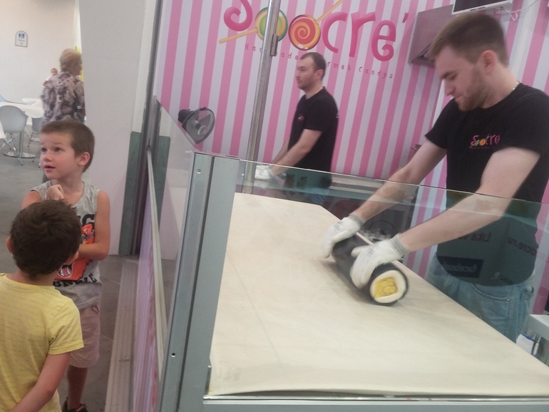 Я до этого по ТВ смотрела весь процесс. Но живьем просто завораживает! Купили детям по баночке - натурально и вкусно: