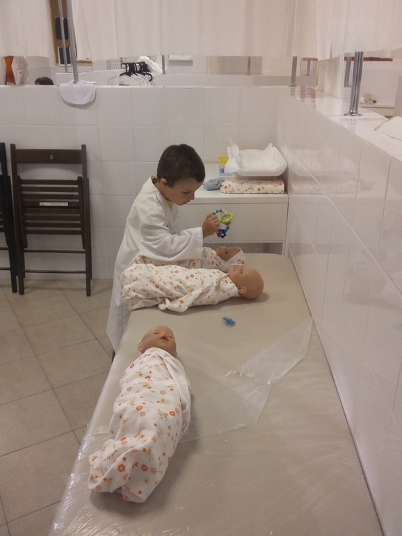 А потом пошли в Кидбург, который очень разочаровал меня некомпетентностью работников! Постоянно призывала Старшего мастера для решения проблем. В Больницу, например, Вовку не хотели брать по возрасту, хотя в Питере он делает карьеру и уже помощник главного врача. А тут еле взяли педиатром. Вот он наш многодетный заслуженный папаша: