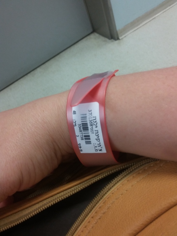 Первое обследование - ПЭТ-КТ. Опять на мне красный браслет - аллергия: