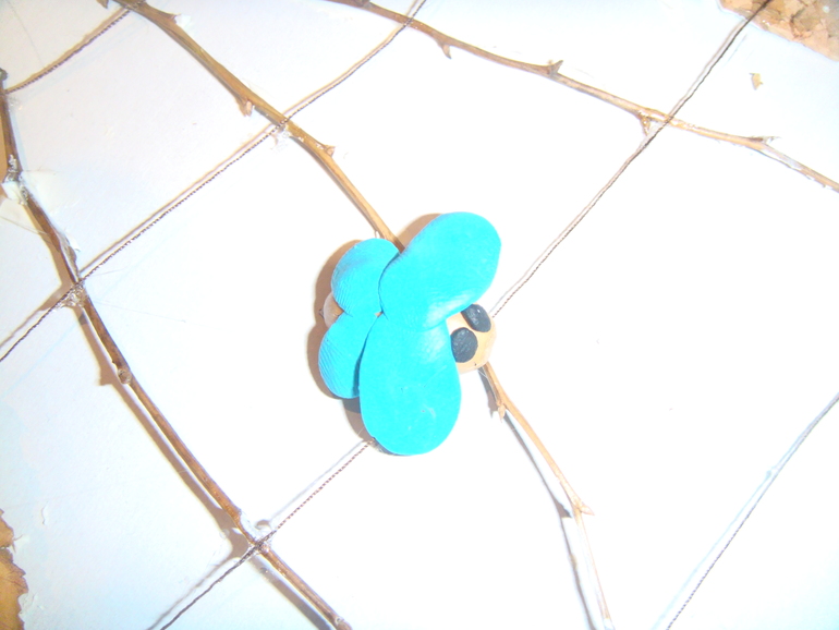 Для паутины наклеили веером тонкие веточки: