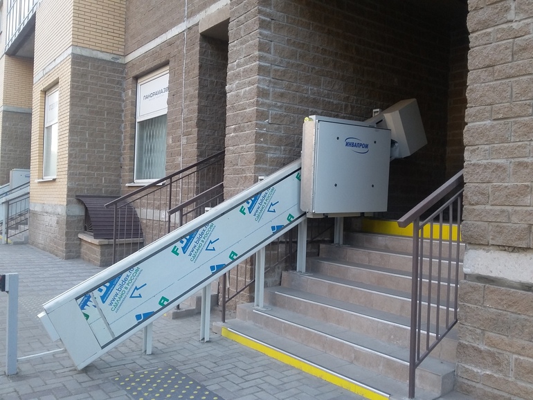 Вообще, хожу всегда с "открытыми глазами" и подмечаю много интересного. Вот новый жилой квартал и там у каждого подъезда у ступенек есть специальные подъемники для инвалидов: