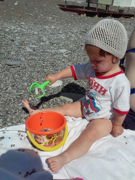 Правда, первое время Кирюша плескалась в бассейне, вода в море холодновата: