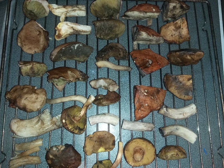 С грибами дома разобралась быстро - улов у нас скромный. Это на сушку: