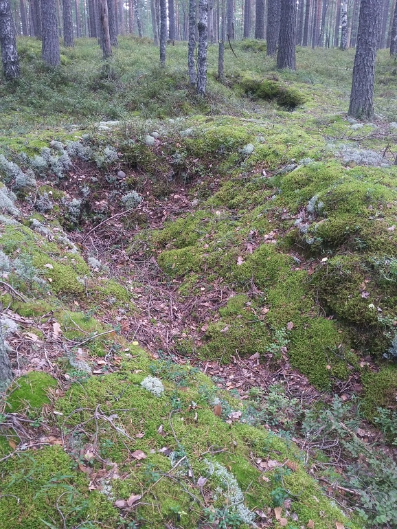 Места красивейшие: мох, сосны, сопки, песочек. Но тут и там еще видны следы войны - заросшие блиндажи на склонах сопок: