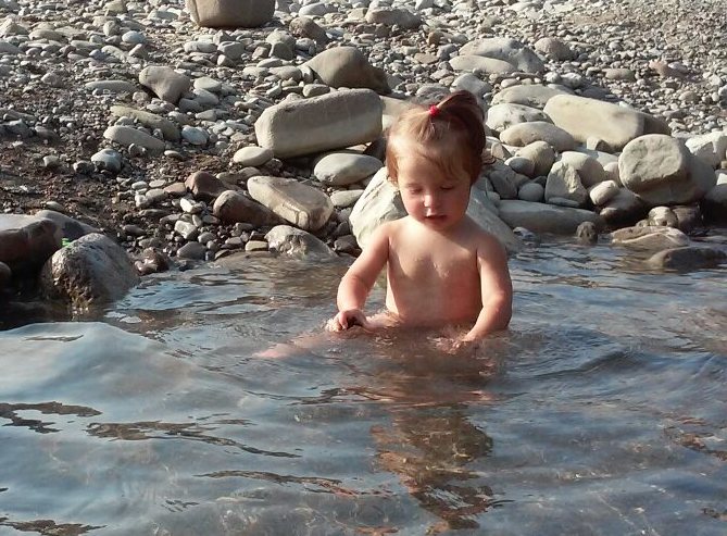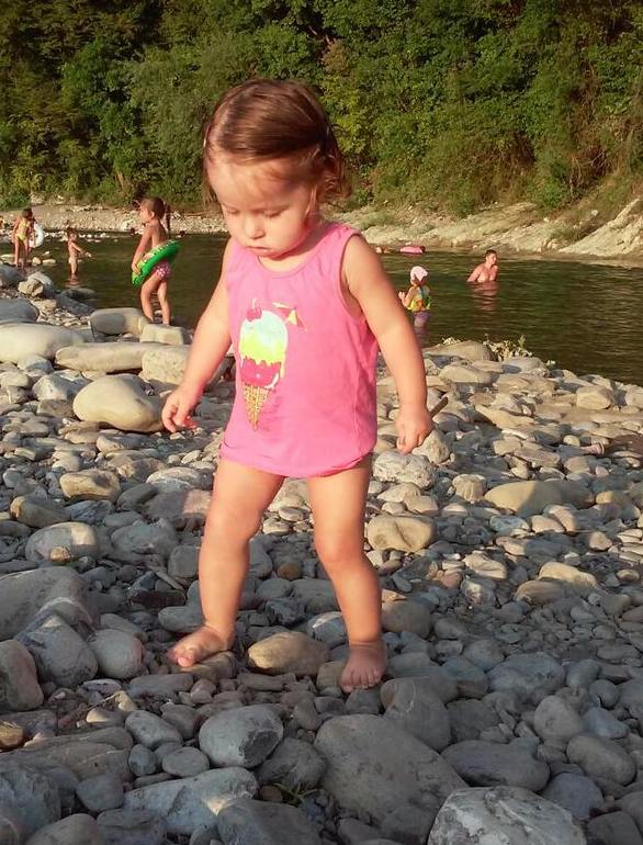 Удивляюсь как ловко дети ходят ко камням (никакой массажный коврик не нужен!):