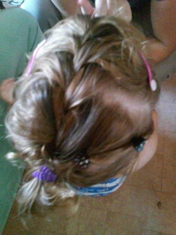 Волосы у Киры точно мои (у Вовы мой вихор, у нее рост волос). Мягкие, непослушные, крупными волнами во все стороны: