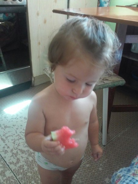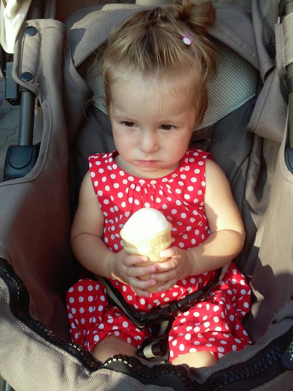 Но она девочка. Есть и свои развлечения. По-моему, главное из них - еда. Вот обжорка маленькая - лопает всё и всегда. Мороженое: