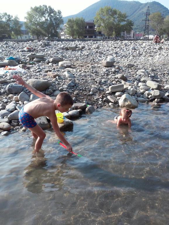 Отдых у них очень насыщенный. Купаются в море и речке: