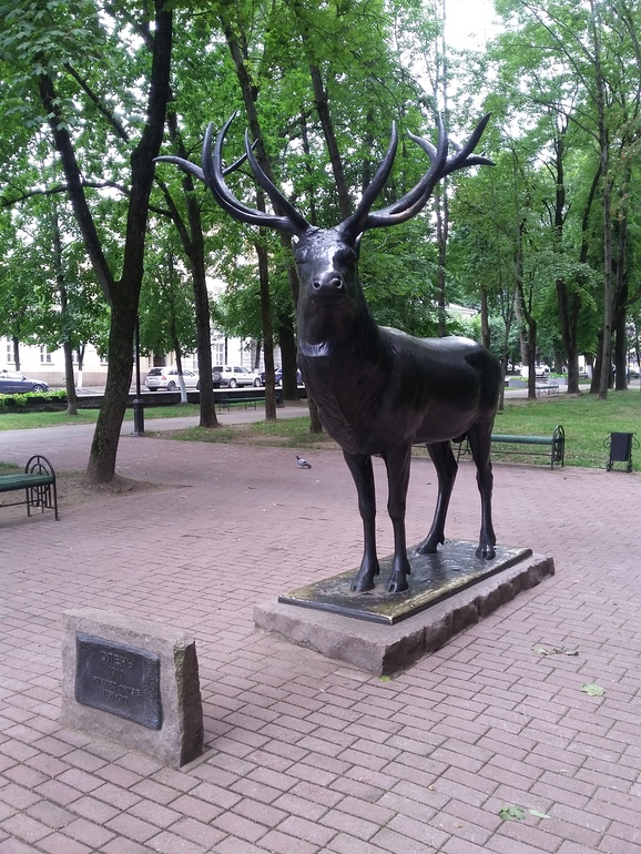 Смоленск в войну был полностью разрушен и по решению комиссии ООН не подлежал восстановлению, т.к. на это по расчетам ушло бы более 100 лет. Смоляне возродили город за 15... Причем воспроизвели фасады старых зданий по сохранившимся фотографиям. А этого оленя привезли в подарок послевоенным детям как игрушку: