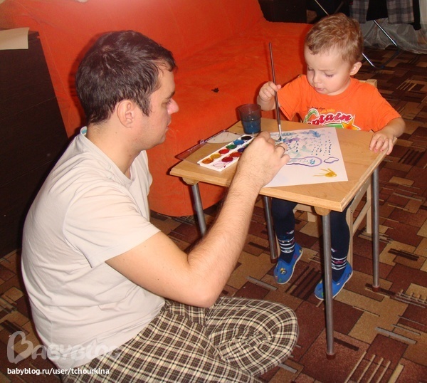 Рисовал Вова с папой за столиком, который сделала прадедушка: