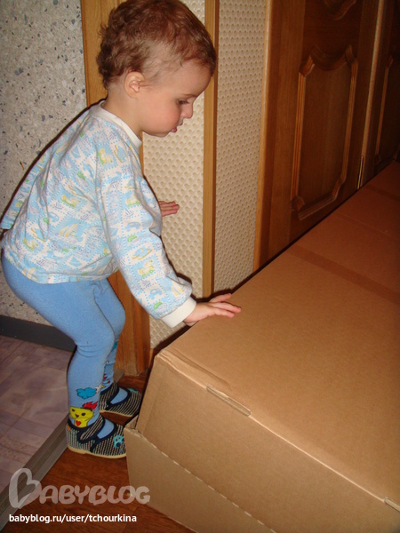 А это обновка детей - диван из Икеа. Вова как всегда был в центре событий. Помогал вскрывать коробки: