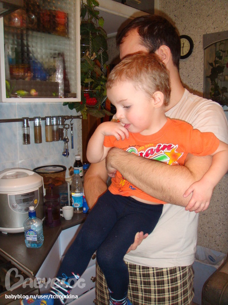 Вова прибежал на запах и попросил папу показать что на плите?