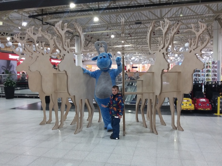 Случайно попали в Меге на какое-то мероприятие с огромными персонажами из ассортимента Икеа: