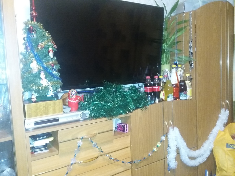 И дома традиционно украсили квартиру к Новому году. Вовка лично лазил у развешивал всё приглянувшееся из новогодней коробки: