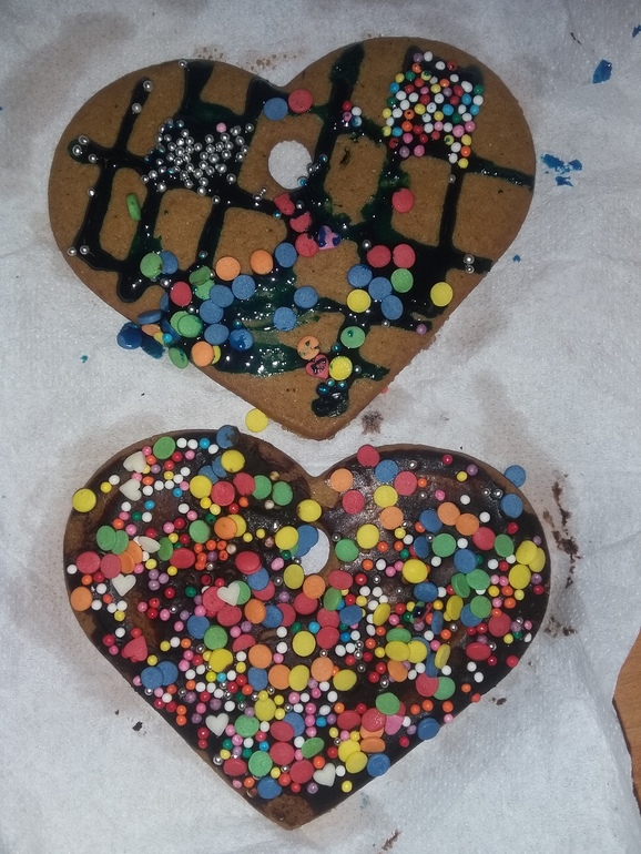 Внуки побывали у дочи на корпоративной елке. Среди прочего украшали пряники: