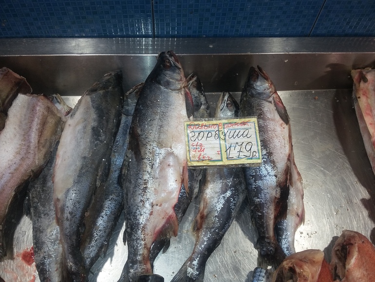 И во всех рыбных магазинах очень дешевая горбуша, удивляющая моих коллег: