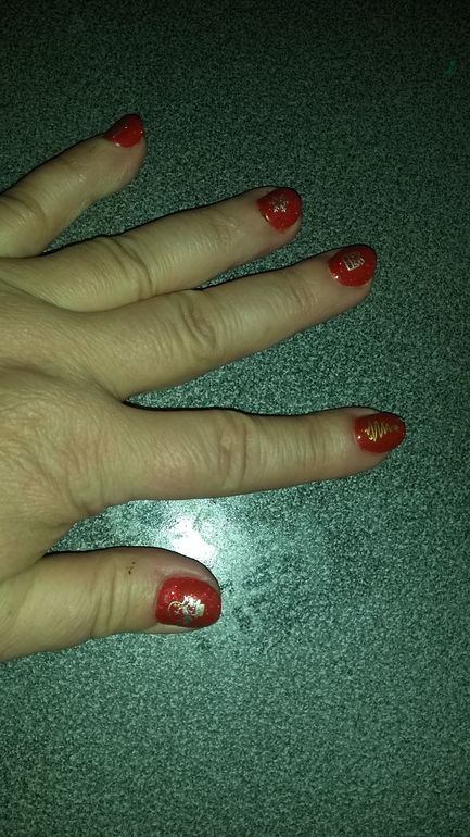 Сделала себе для настроения новогодний маникюр: