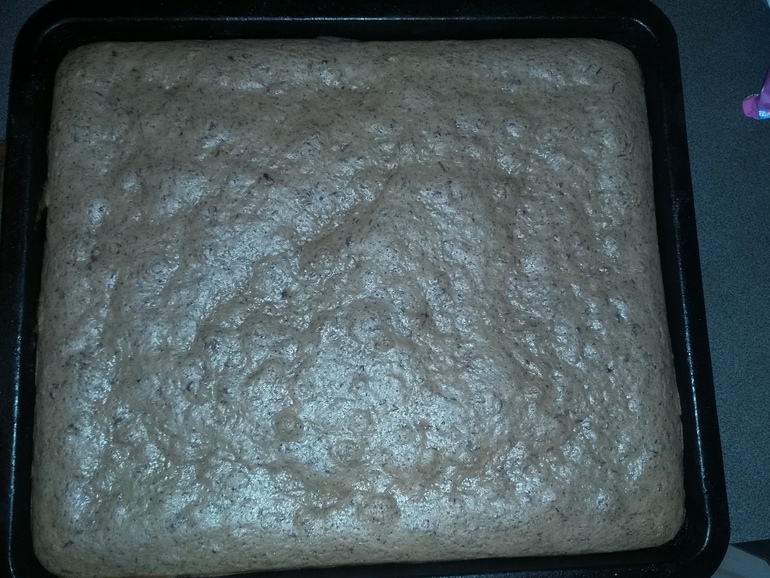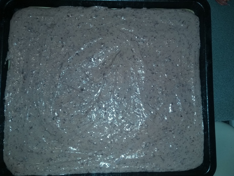 Вылить на смазанную пекарскую бумагу, разровнять:
