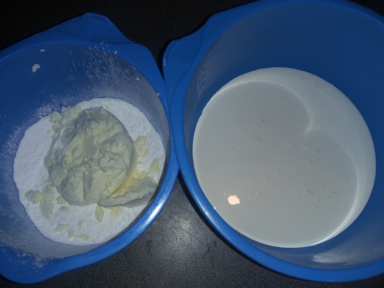 Для крема приготовить в 1 емкости банку Маскарпоне и 1 ст. пудры, в другой 500 мл сливок 35%: