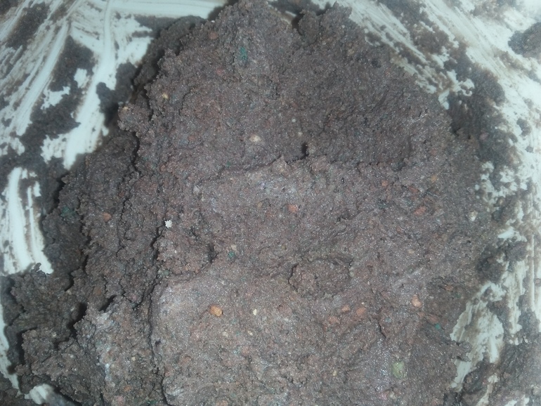 Для этого в крем вмешала крошки (по структуре похоже на пирожное картошка):