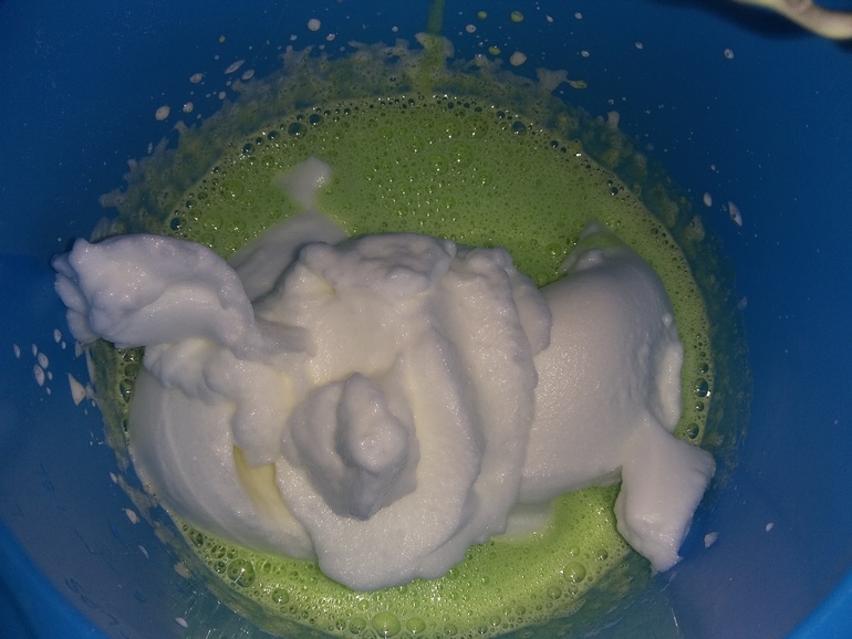 Добавить пищевой гелевый краситель и ароматизатор, перемешать: