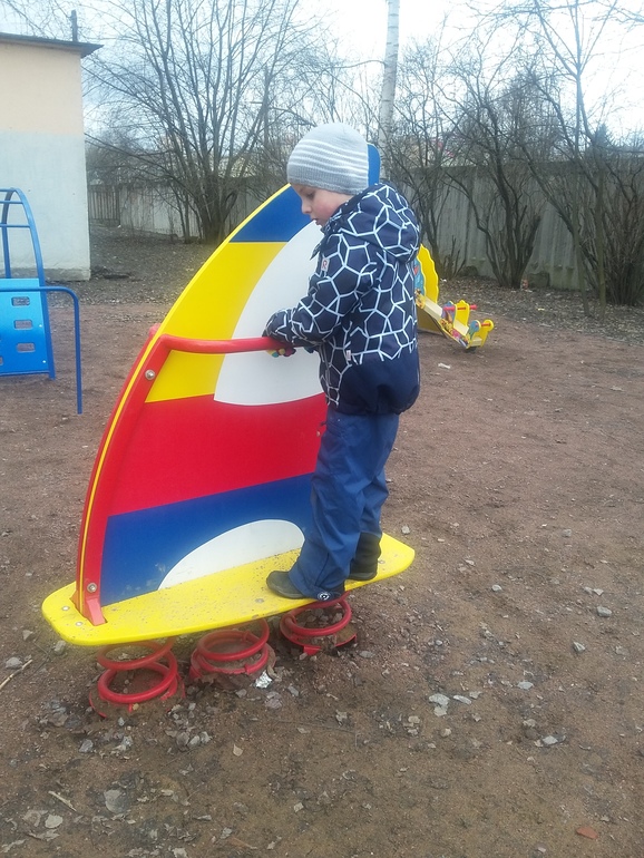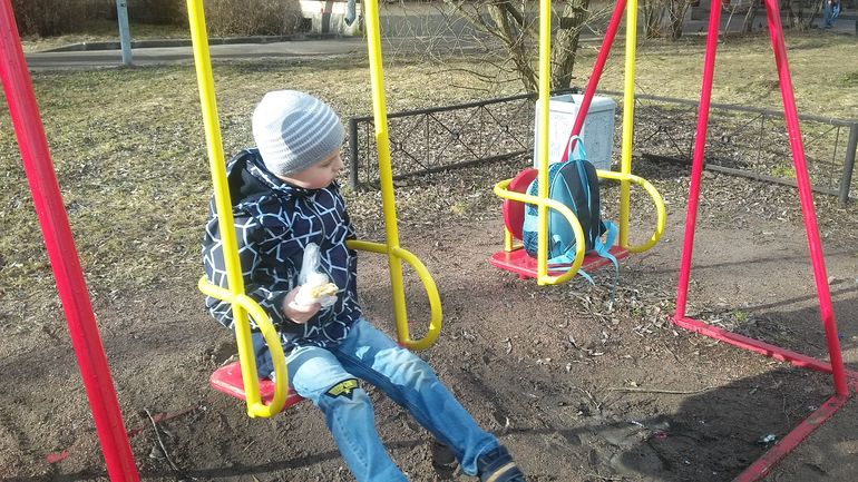 Занятия с логопедом продолжаются, хотя я не вижу уже никакого смысла в них. К тому же она стала частенько их переносить/отменять. Надеюсь, что к лету мы завершим ее программу. А пока перекус на качелях между садиком и логопедом с повторением скороговорок и придумыванием слов: