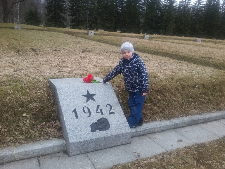 Положили цветы на братскую могилу 1942 года, в котором в блокаду умерли все мамины братья и сестры: