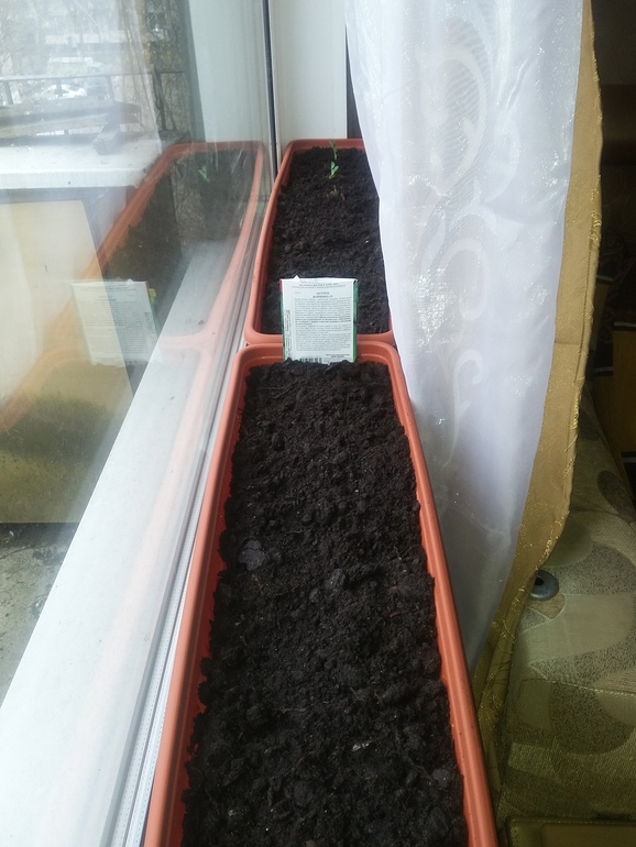 Но мы пошли дальше! И решили на подоконнике устроить грядку! Купили 2 ящика балконных, семена: