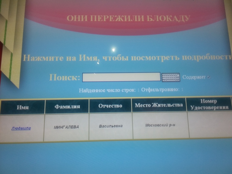 Они передают информацию в Международную Ассоциацию общественных организаций блокадников города-героя Ленинграда. И еще мне предоставили контакты Президента Международной ассоциации блокадников Леоненко Валентины Ивановны, т.к. она создатель Книги Памяти.