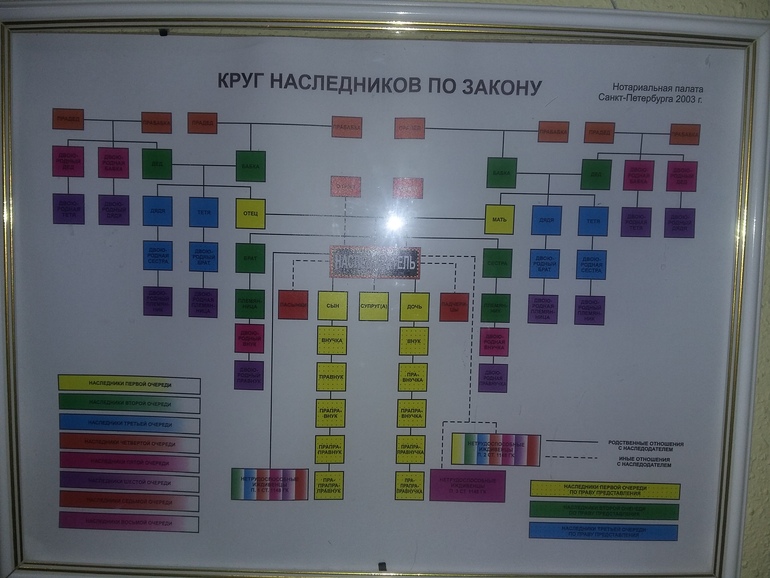 Убила "поясняющая таблица" родственников-наследников, расположенная на стене в нотариальной конторе: