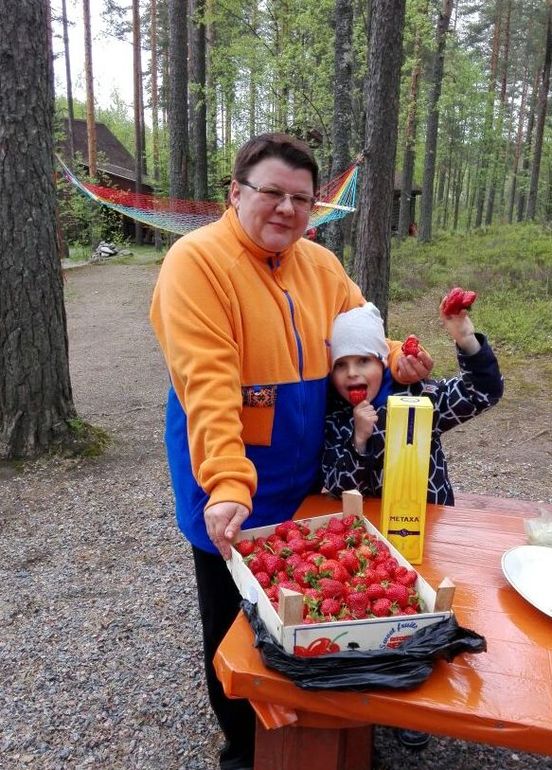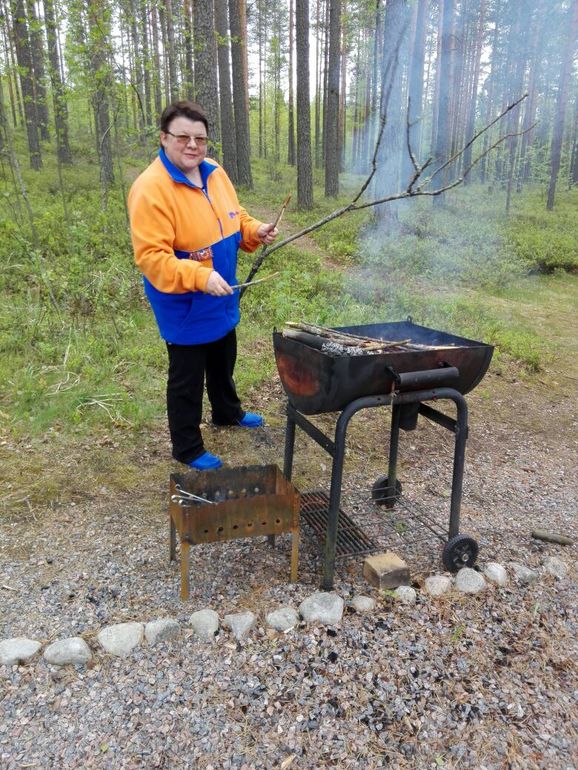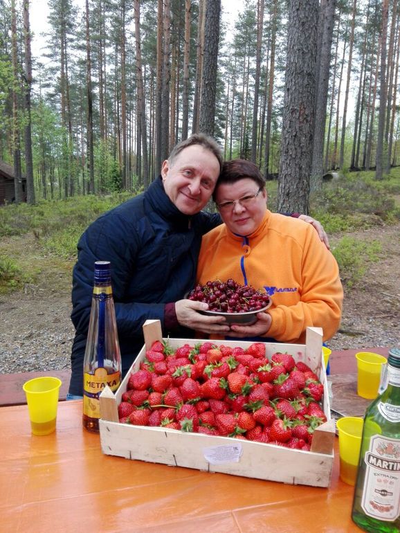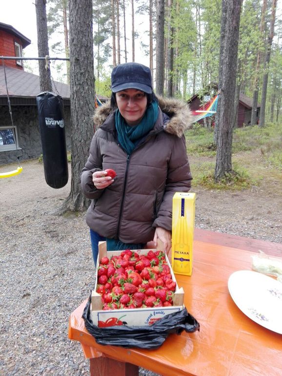 Свой юбилей я решила отмечать не 29 мая, а в выходные (3-4 июня) в лесном коттедже. В субботу было прохладно, стол накрыли в доме: