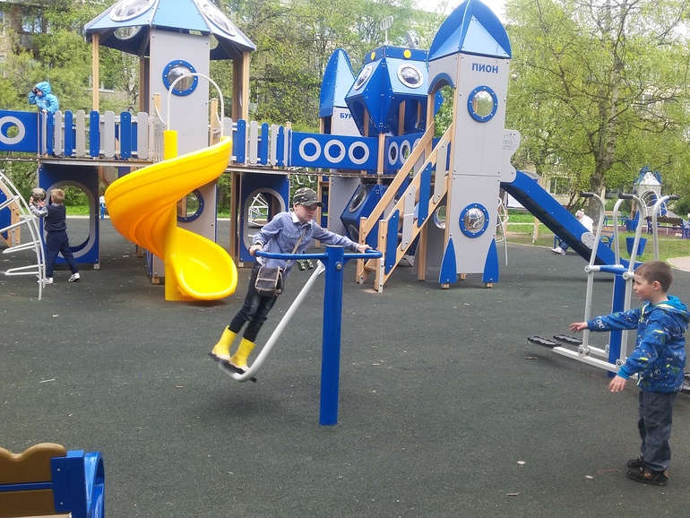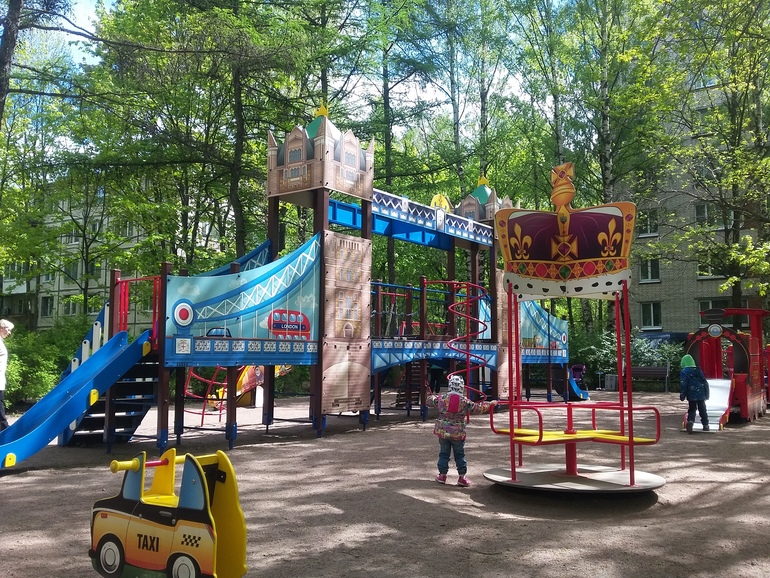 После выпускного в детском саду у Вовика начались каникулы. А я и рада быть с ним, пока позволяет время. Чего мы только не понаделали! Во-первых, побывали на многих детских площадках как в нашем районе, так и в центре. Это площадка "Лондон":