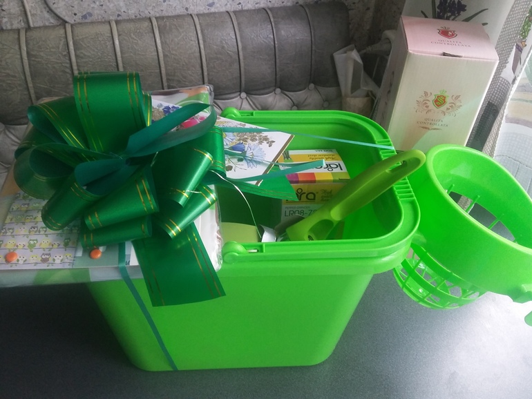 И зеленый подарок от дочи с нужностями в новую квартиру: