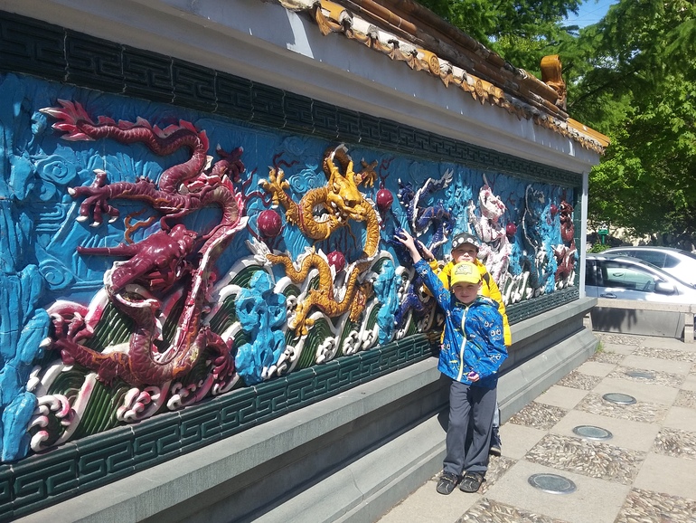 Была у нас и длинная прогулка от метро Чернышевская до метро площадь Ленина, которая заняла у нас ... 8 часов. Потому что медленно шли по солнечному городу,заглядывали во дворы и на детские площадки, рассматривали достопримечательности. Это Китайский дворик: