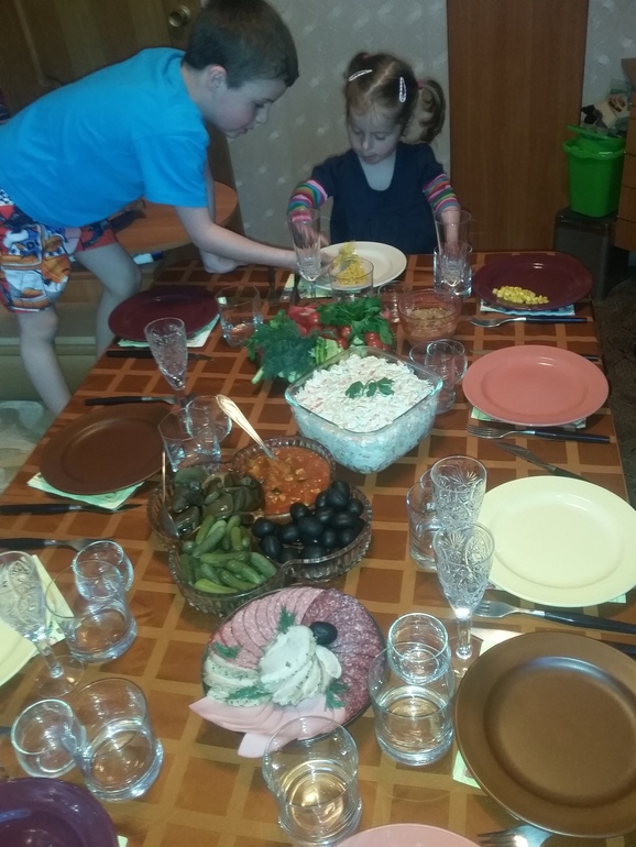 Готовила всё доча. Только пироги мои и буженина. На горячее запекли морского окуня (3 кг!):