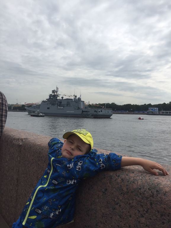 Хмурое небо не помешало детям погулять в городе и посмотреть корабли на Неве: