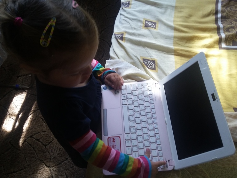 Остальное время шкодничали дома. Кира осваивает мой ноут: